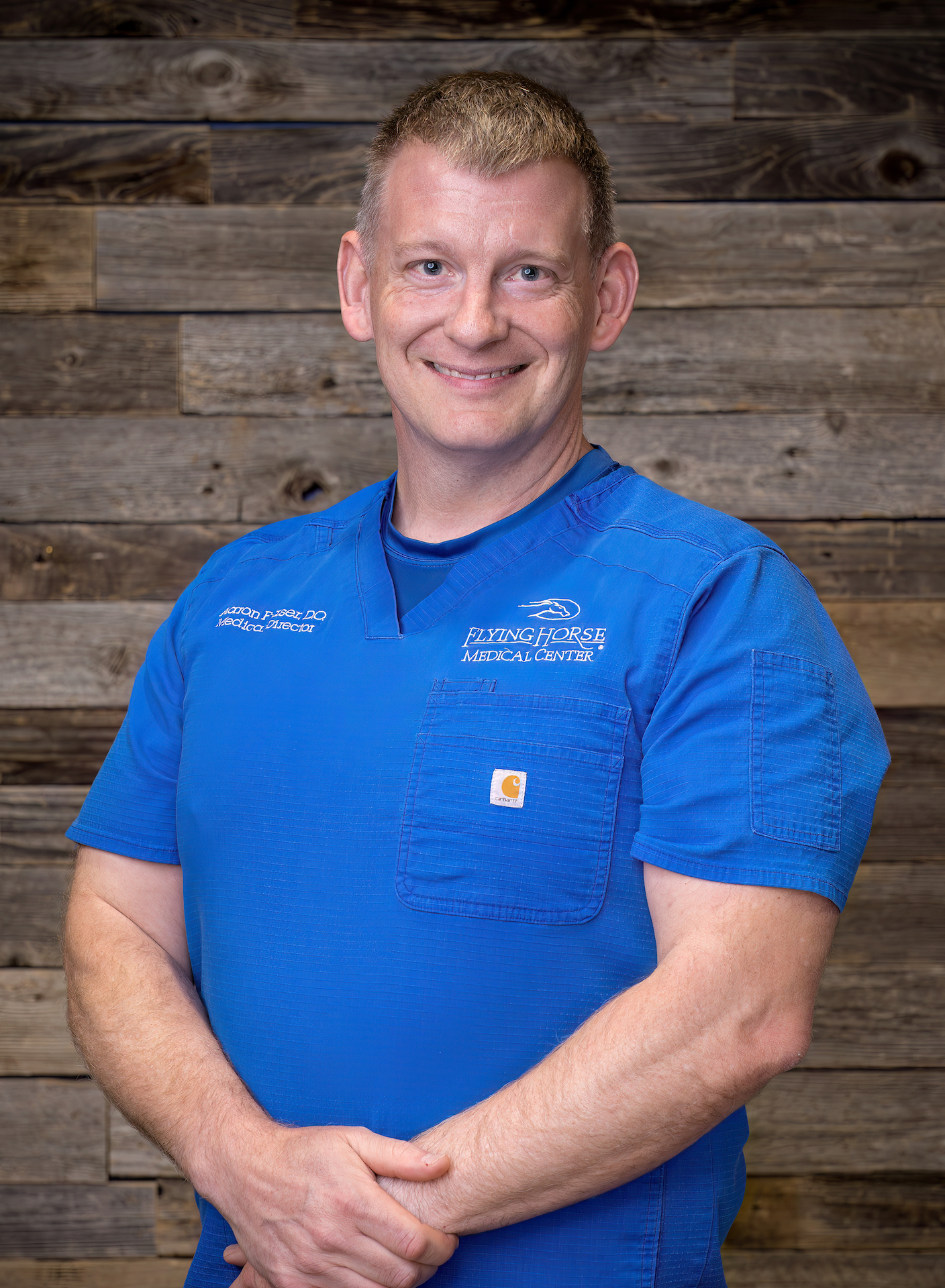 Meet Dr. Aaron Fraser. Dr. Fraser is Medical Director and co-owner of Flying Horse Medical Center and Aesthetics. Dr. Fraser received his B.A. from Albion College where he majored in Chemistry and Biology, then he continued on to earn his medical degree from Michigan State University, College of Osteopathic Medicine. It was an honor for him to serve in the US Air Force at the Air Force Academy, where he then went on to serve in Afghanistan. Dr. Fraser is Board Certified in Family Medicine by the American Board of Family Practice. He enjoys seeing patients of all ages and building relationships with each patient and family. He lives in Monument, CO, with his wife, Dr. Erin Fry, and their two children. Dr. Fry practices as a Psychiatrist at Colorado College and at Flying Horse Medical Center. Dr. Fraser loves the outdoors, soccer and spending time with his friends and family.