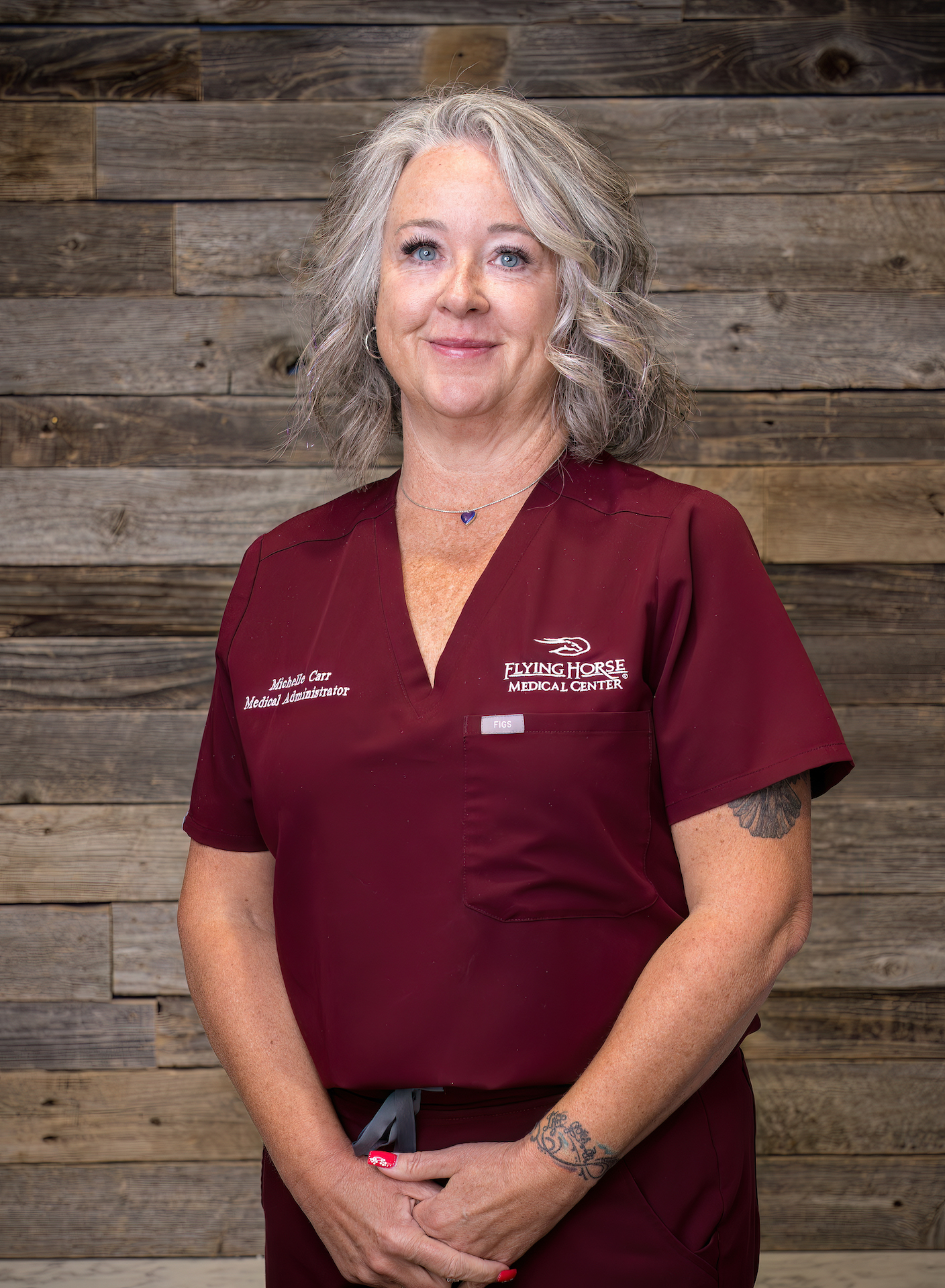 Michelle Carr is Flying Horse Medical Center’s Medical Administrator. Michelle grew up in Cincinnati, Ohio and after spending a few years as a receptionist, she realized she wanted to be in the medical field. Michelle joined the United States Air Force and served as a Medical Technician and Emergency Medical Technician for 8.5 years. She worked on a Medical/Surgical Floor, Trauma ICU, PACU, Aeromedical Evacuation, Cardiac step-down unit and an Internal Medicine Clinic. The skills and experience she gained in the military were second to none. She also met the love of her life, Ron, while serving in the Air Force, and after separating was blessed to be a stay-at-home mom for over 10 years. Michelle has a background in customer service, including call centers and at a Christian radio station. She also has been very involved with ministry and has served as a Children’s Ministry Director at 2 different churches. Michelle and her husband Ron have 4 sons, and a beautiful granddaughter. They love to travel, ski/snowboard, ride motorcycles and eat good food! Michelle is looking forward to helping others in her role at Flying Horse Medical Center.