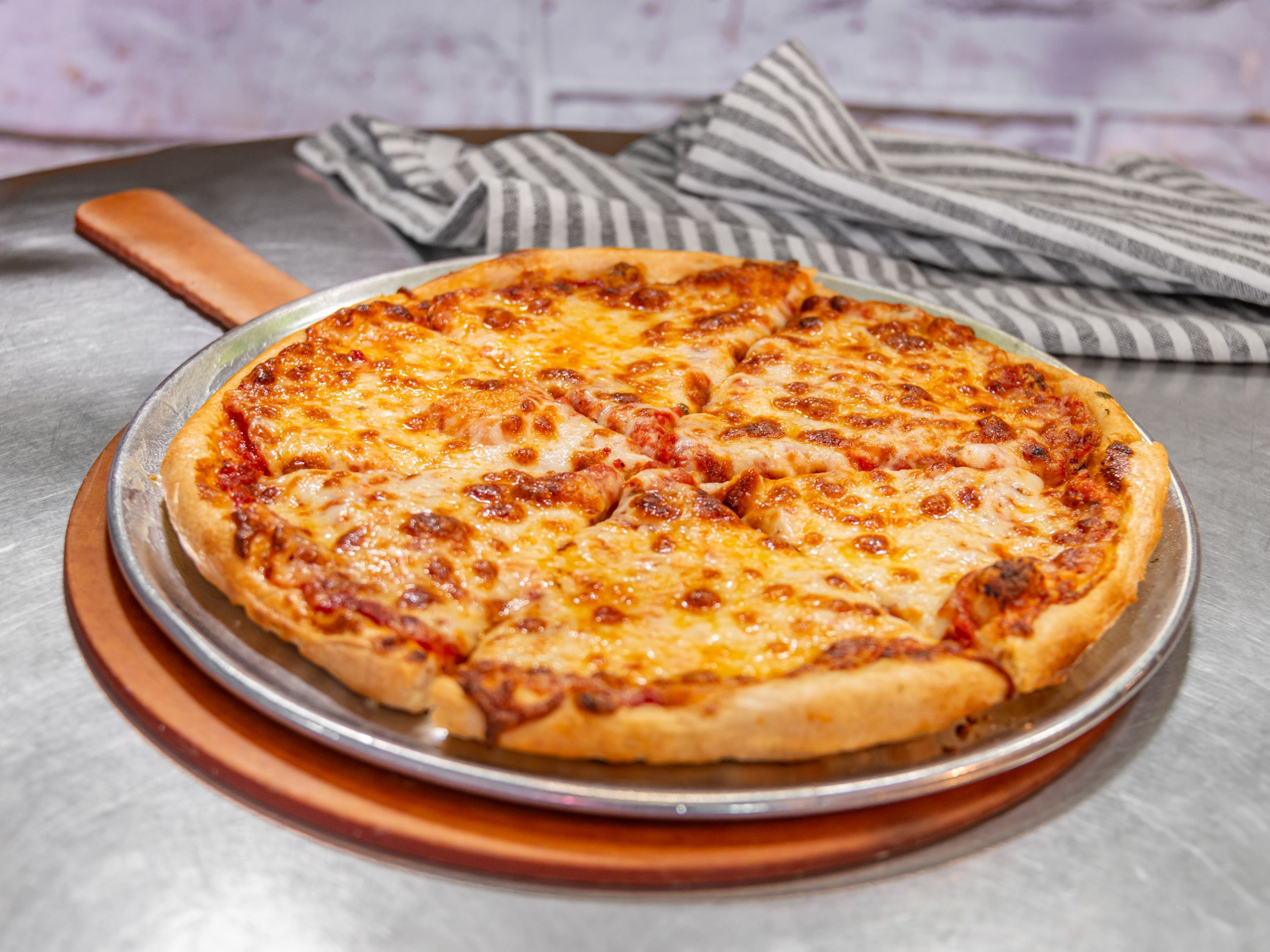 Our hand stretched dough to 11.5 inches, cut into 6 slices, build your pizza how ever you would like
