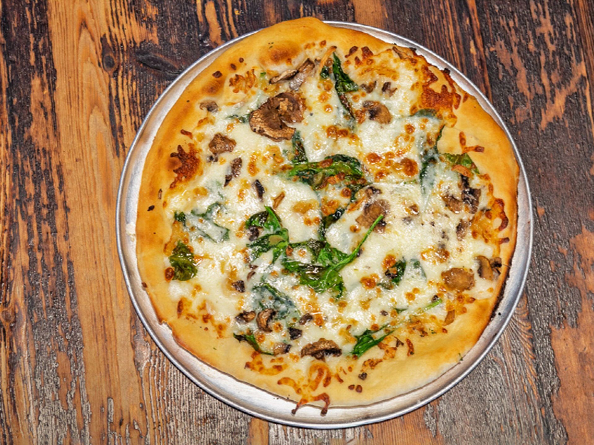 Alfredo Sauce, Shredded Motz, Fresh Spinach, Roasted Garlic, Mushrooms *Sauce is not Vegan