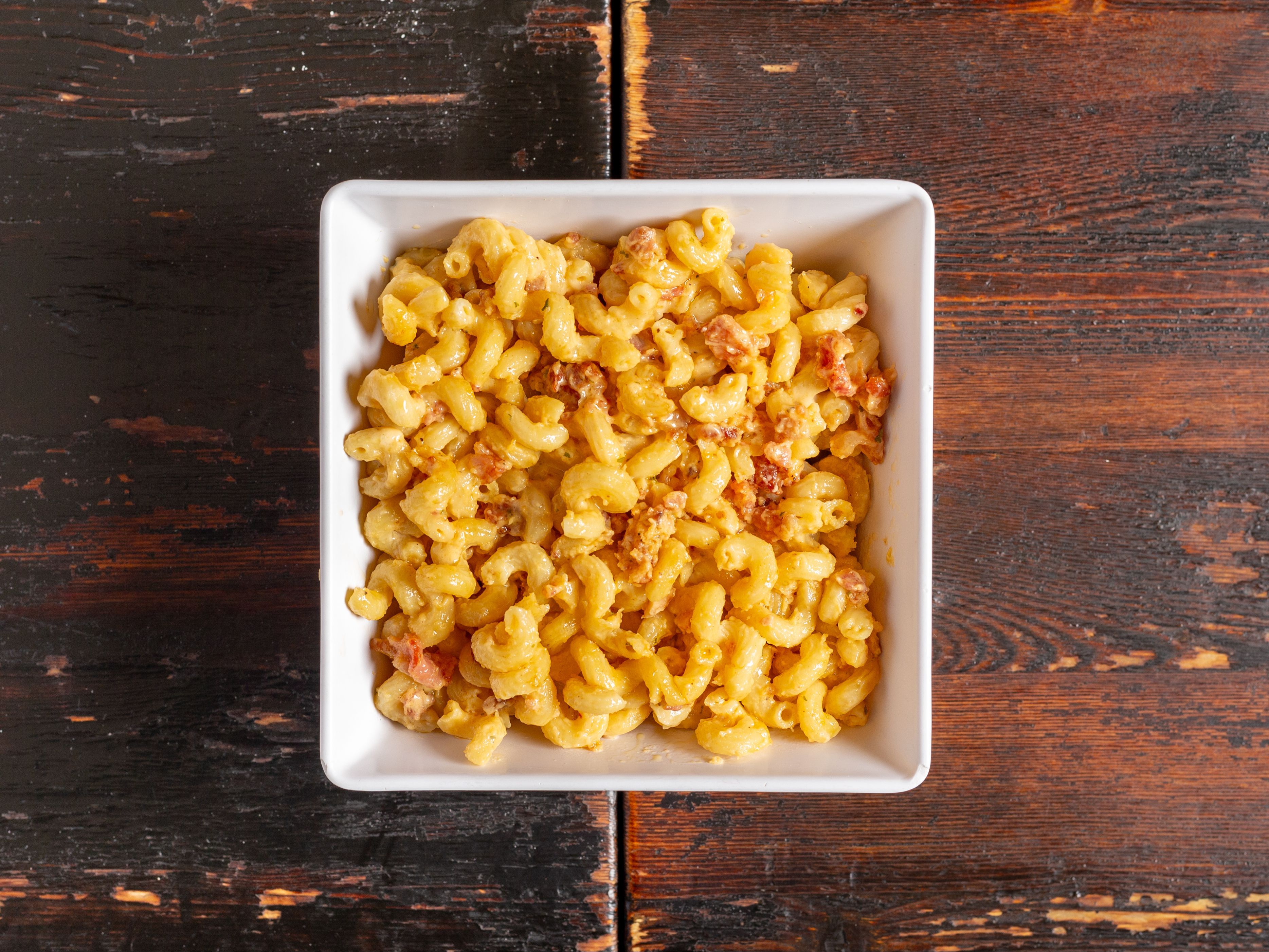 Yummy mac-n-cheese with crisp, crumbled bacon