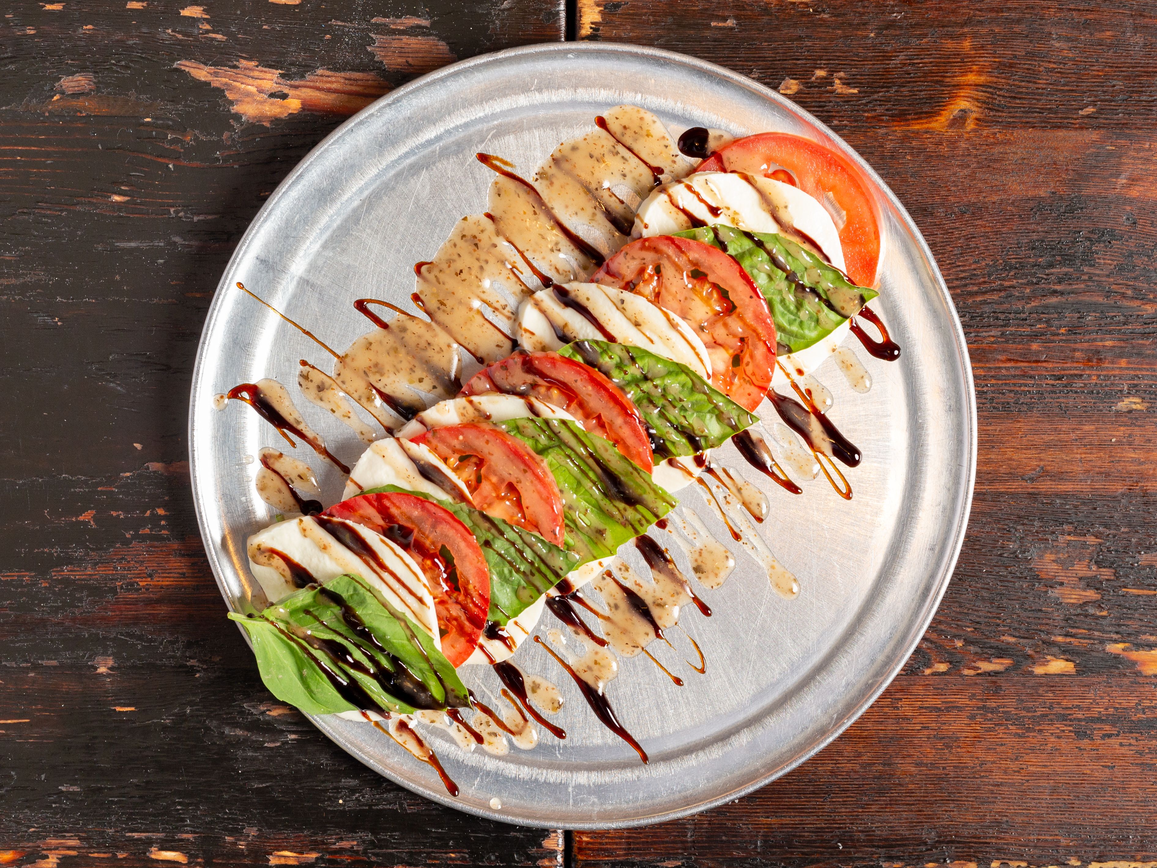 Fiore di latte mozzarella, fresh basil and tomatoes, house vinaigrette and a drizzle of balsamic reduction