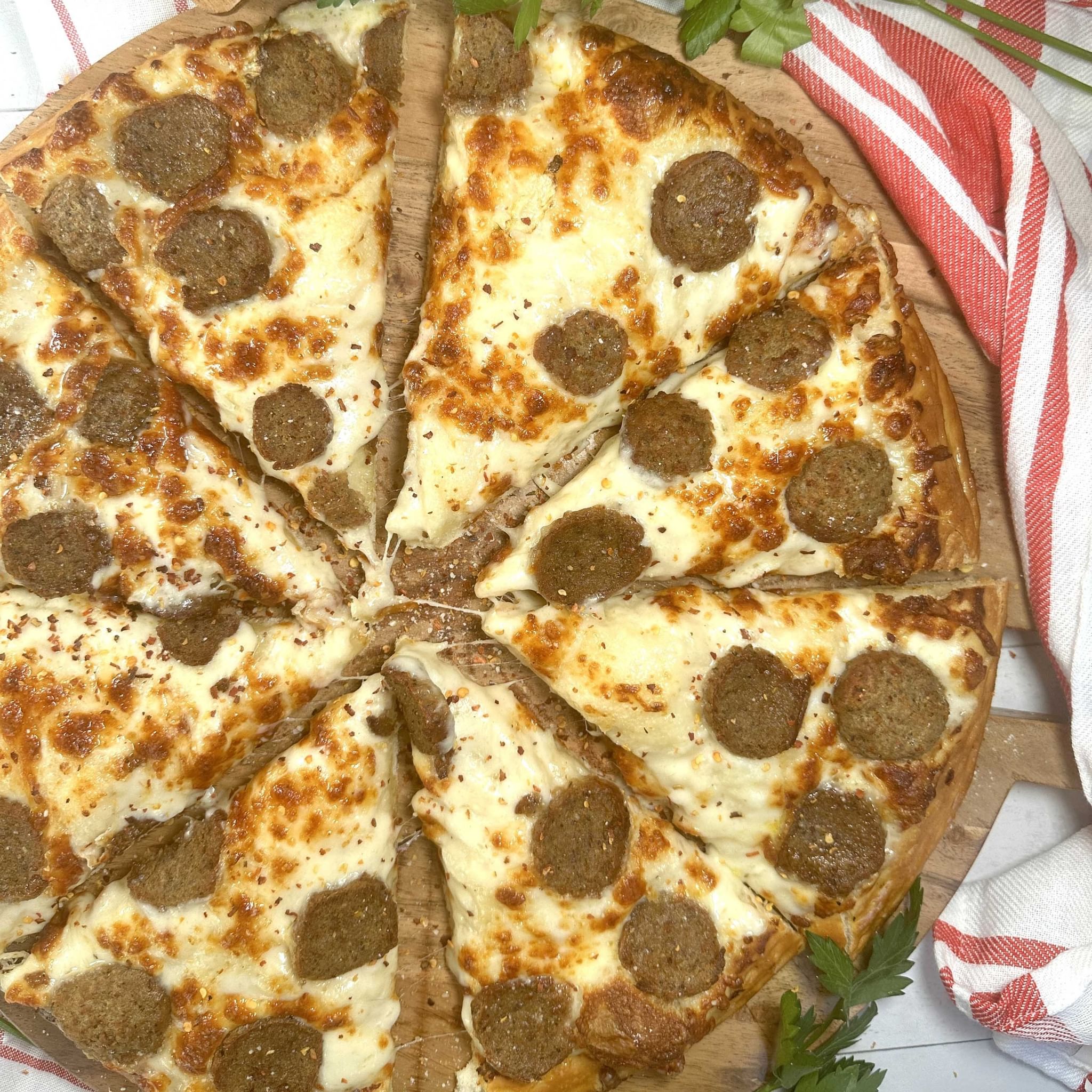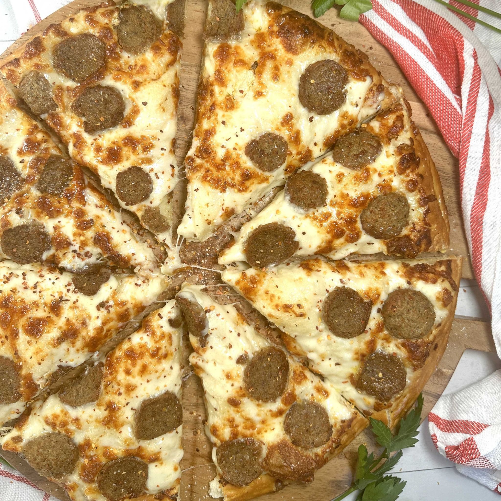 Alfredo sauce, meatballs, Mozzarrella, and Parmesan