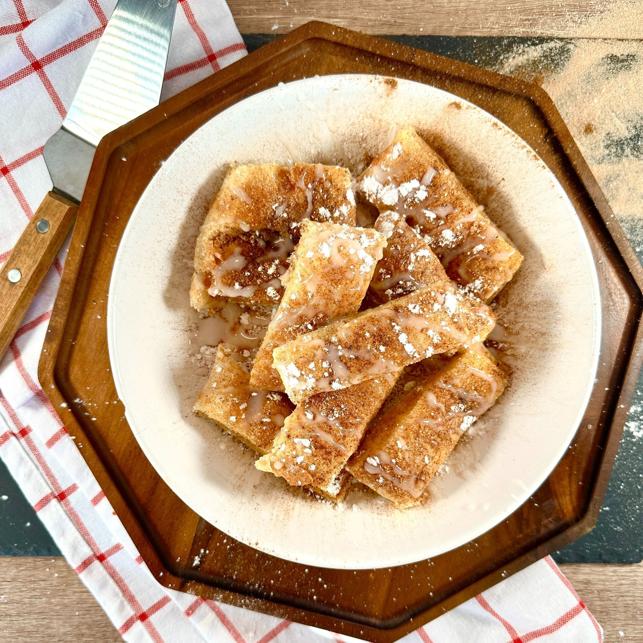 Small Cini-Bread of hot, freshly baked bread, sprinkled with a special blend of cinnamon and sugar and a light coating of powdered sugar. Comes with syrup on the side Sorry. No GF option on the half order